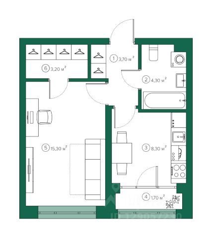 Продаётся 1-комнатная квартира в строящемся доме (4 очередь 1 этап), срок сдачи: IV-кв. 2027, общей площадью 34.5 кв.м., на 1 этаже. Михайловский парк-квартал расположен рядом с центром Томска, вблизи памятника природы и любимого места отдыха томичей - Михайловской рощи. Парк-квартал - это многофункциональная среда, где природа, зелень рощи и авторский ландшафтный дизайн существуют в гармонии с инфраструктурой города. Первый и второй этап строительства Михайловского парк-квартала - это два дома переменной высотности от 5 до 10 этажей с заглубленным паркингом под двором. Внутренний двор Дома 1 и Дома 2 обустроен на кровле паркинга на уровне первого этажа. Вдоль бульвара расположены коммерческие помещения: магазины, аптеки, салоны красоты, кафе и офисы. Продается 1-комнатная квартира на 1 этаже в Томске.
