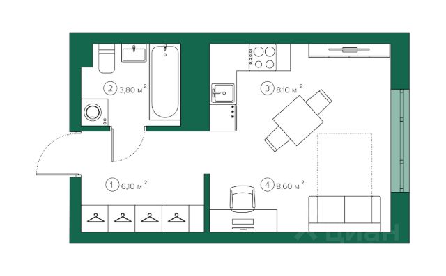 • ✅ Минимальная площадь: 23,2 м²