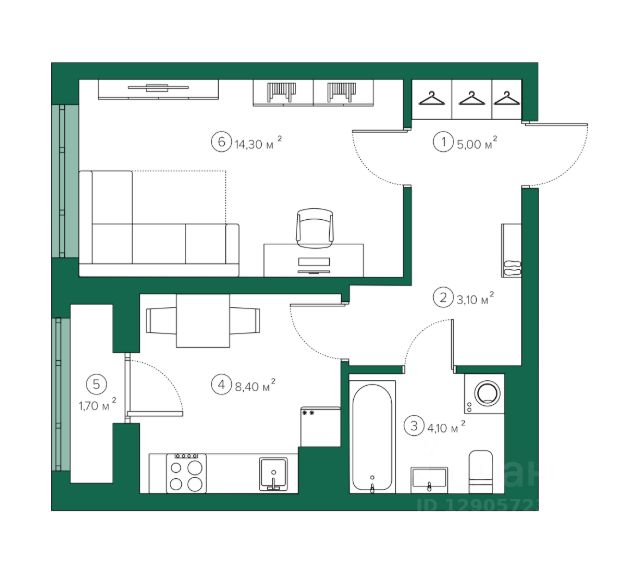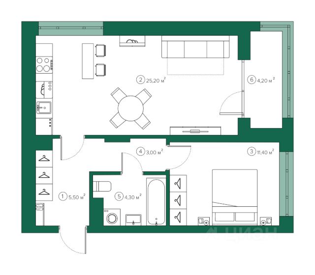 Выполнена стяжка с шумоизоляцией, ровные межкомнатные стены, разводка электроснабжения — остается только финишное покрытие. Возможны варианты с отделкой под ключ*.