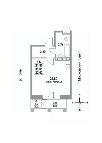Выполнена стяжка с шумоизоляцией, ровные межкомнатные стены, разводка электроснабжения — остается только финишное покрытие. Возможны варианты с отделкой под ключ*.