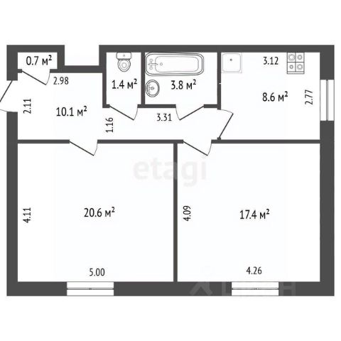 • ✅ Объект наибольшей площади: 62,6 м²