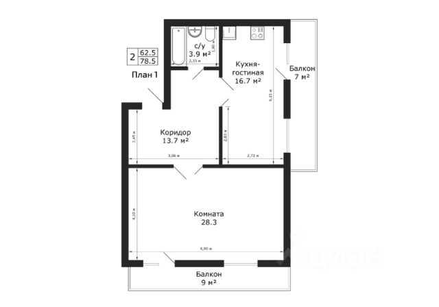 • ✅ Минимальная площадь: 78 м²