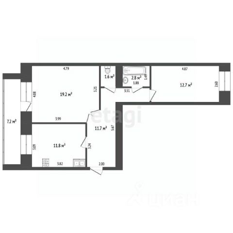 Общая площадь квартиры - 38, 7 кв. м.