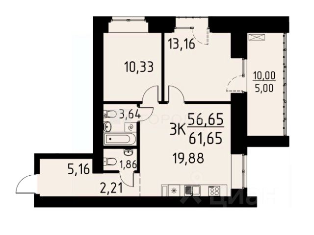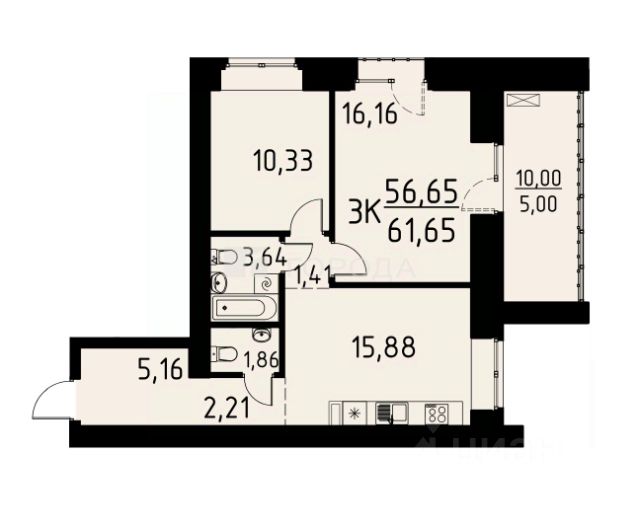 • ✅ Минимальная площадь: 61,6 м²
