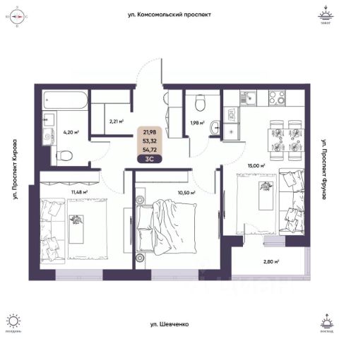 Трехкомнатная распашная квартира в современном доме с мастер-спальней и планировкой по дизайн проекту. Это квартира в современном краснокирпичном доме, в самой зеленой части кировского района. В квартире был выполнен ремонт и планировка по дизайн проекту. Просторная входная зона, большая гостиная с кухней-нишей, спальня с выходом на лоджию, 2 санузла и уютная мастер-спальня все это создает удобное и функциональное пространство для жизни. Дом расположен на второй линии от проезжей части, что обеспечивает тишину и комфортное проживание. Рядом есть все сетевые магазины и гипермаркеты, 3 детских сада, Гимназия 1, кафе и рестораны. В шаговой доступности стадион Буревестник, прекрасное место для прогулок и занятий спортом. Нынешнее планировочное решение полностью узаконено. Без долгов и обременений квартира готова к продаже. Для записи на просмотр звоните по телефону в объявлении." " Комплексная услуга для покупателя с полной финансовой ответственностью агентства При звонке, пожалуйста, сообщите номер варианта - JV003070102619