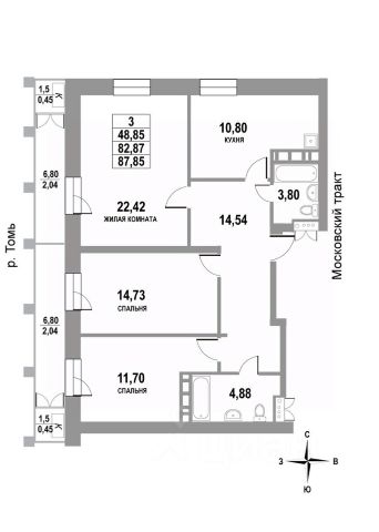 Продаётся 3-комнатная квартира в сданном доме (1 этап), срок сдачи: I-кв. 2025, общей площадью 87.85 кв.м., на 18 этаже. Новый многофункциональный жилой комплекс "Московский" от Специализированного застройщика "ЖК Московский", ООО расположен в г. Томск на ул. Московский тракт.