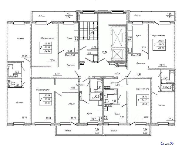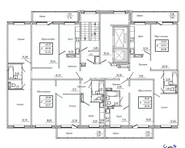 • ✓ Студии, 1-3-комнатные от 84,1 м² до 84,3 м² м²