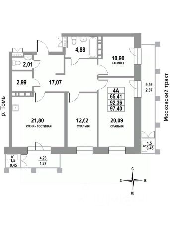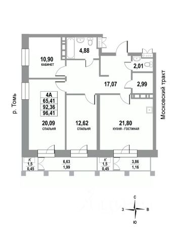 • Большая ванная комната 6,6 кв.м. и дополнительный санузел.