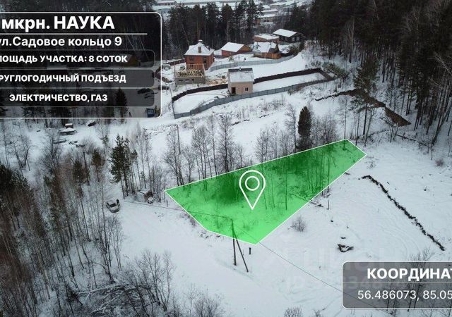 Продажа земельного участка 8 соток, расположенным в микрорайоне Наука, по улице Садовое кольцо 9 Предлагается к продаже перспективный земельный участок площадью 8 соток в современном и активно развивающемся микрорайоне "Наука" города Томска. Главные плюсы: Все коммуникации по границе (газ, свет, вода) Рядом с городом, отличный выезд Тихий престижный район Готов к стройке, документы чисты Цена — договорная. Звоните. .