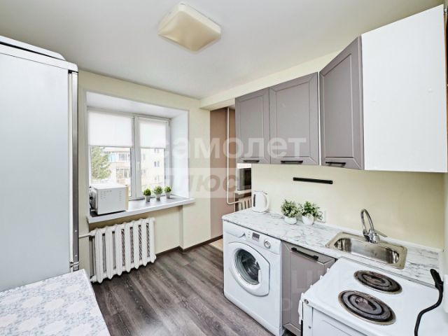 При продаже остается: Встроенный кухонный гарнитур, бойлер на 60 литров, стиральная машинка - автомат, электрическая плита, чайник, телевизор, мебель в прихожей, кухонный стол со стульями, компьютерный стол, двухспальный диван, стенка в комнате.