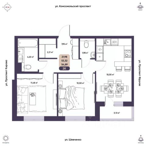 Квартира 251. ПРОЕКТ ГОЛЛАНДСКОГО АРХИТЕКТУРНОГО БЮРО Концепт жилого комплекса "На Комсомольском" разработан известным голландским архитектурным бюро LEVS. В проекте воплощены мировые подходы к формированию городских пространств: объединение комфортного жилья и реконструированной городской среды. В ДЕЛОВОМ ЦЕНТРЕ ТОМСКА Перед жителями открыто множество транспортных решений ИНФРАСТРУКТУРА ДЛЯ ЖИЗНИ Детские сады, школы и гимназии Рядом Михайловская роща Фрунзенский рынок, супермаркеты и магазины Медицинский центр "Гармония здоровья" ГИБКИЕ ПЛАНИРОВКИ Все квартиры предусматривают трансформацию и приспособлены для растущей семьи. Компактные квартиры можно объединять в более крупные. ПАНОРАМНЫЕ ОКНА Квартиры расположены так, чтобы их владельцы наслаждались видами из окон. Из башен видны панорамы Михайловской рощи, центра и леса Академгородка. Интеллектуальная система УСБИС обеспечивает комплексную пожарную безопасность, телефонию, видеонаблюдение внутри и вокруг дома, интернет ТЕРРАСЫ И СПОРТ НА КРЫШЕ Сегодня эксплуатируемая кровля является комфортным ежедневным решением для жителей центра города. На такой крыше можно прекрасно провести время: развеяться и отдохнуть, поднявшись от обыденной домашней обстановки, заняться спортом и играми или прогуляться с детьми. Доступная для жильцов территория на крышах домов занимает более 3000 кв. м и делится на три функциональные зоны: спортивную, зоны для отдыха и медитаций, а также территорию частных террас. На крышах домов расположены частные террасы и общественные пространства для спорта и отдыха. ПАРК ВО ДВОРЕ Проект озеленения выполнен польским ландшафтным бюро S&P Architektura Krajobrasu SP. Студия использует комплексное ландшафтное планирование и ландшафтный дизайн как средства решения проблем, связанных с изменением климата, качеством жизни и биоразнообразием. S&P считает, что ландшафтная архитектура предназначена не только для создания сообществ и культуры, но и для создания пространств, "в которых происходит жизнь". Во дворе и по периметру квартала высажены тысячи растений, завезённых из питомников Германии и Польши: крупномерные липы и кусты сирени, шиповники, сосны, гортензии, злаки, туи — всего около 20 видов.