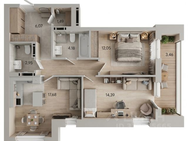 • ✅ Минимальная площадь: 37,2 м²
