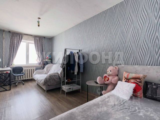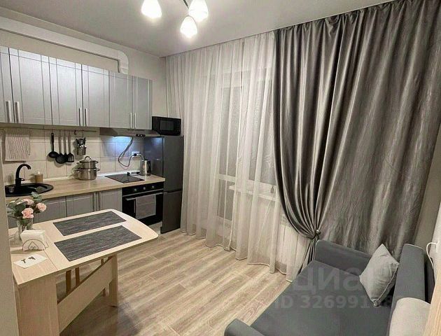 Новому собственнику остается: два кондиционера, видеодомофон, кухонный гарнитур со встроенной бытовой техникой (измельчитель в раковине, варочная панель, вытяжка, духовой шкаф, микроволновая печь, посудомоечная машина), пуфик и два встроенных шкафа в прихожей, встроенный шкаф в комнате, полки и шкаф в ванной комнате.