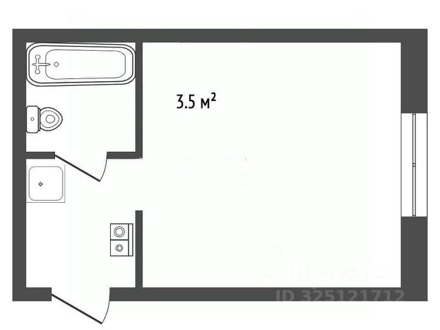 Общая площадь квартиры 18,7 кв.м. В комнате выделена кухонная зона, обустроенная новым кухонным гарнитуром.