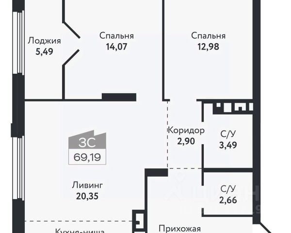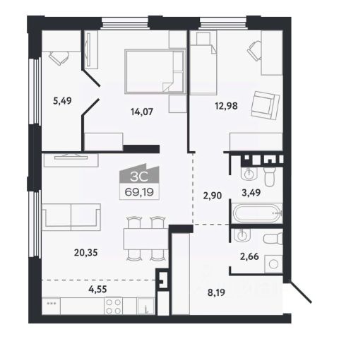 Выполнена стяжка с шумоизоляцией, ровные межкомнатные стены, разводка электроснабжения — остается только финишное покрытие. Возможны варианты с отделкой под ключ*.