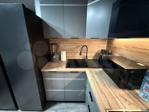 В квартире новая акриловая ванна-вкладыш, бойлер, кухонная вытяжка, мягкая мебель и новые шкафы.