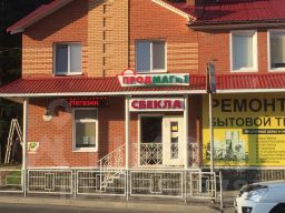 Отдельно стоящее торговое здание в самом центре села, напротив остановочного комплекса.