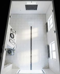 Два входа, высокие потолки.