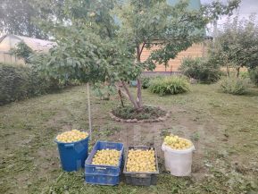 Площадь земельного участка 6.6 соток, участок очень ровный, земля плодородная, разработан и ухоженный, есть плодово-ягодные деревья и кустарники, большая теплица, цветущие кусты и многолетние цветы.