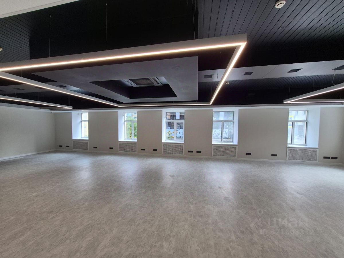 Высокие потолки, много окон.