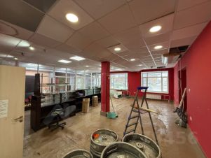 Высокие потолки. Стеклянная перегородка внутри помещения.