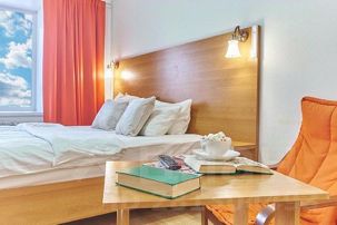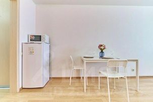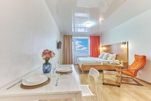 В апартаментах 2+2 спальных места (двуспальная кровать и удобный диван-кровать) они будут комфортны для небольшой компании до 4-х человек, деловых путешественников и семей с детьми.