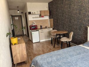 В квартире комфортно могут разместиться 2 человека, для этого есть всё необходимое для проживания: удобная двуспальная кровать 140*200, раскладывающийся диван, постельное бельё и полотенца, шампунь и гель для душа.