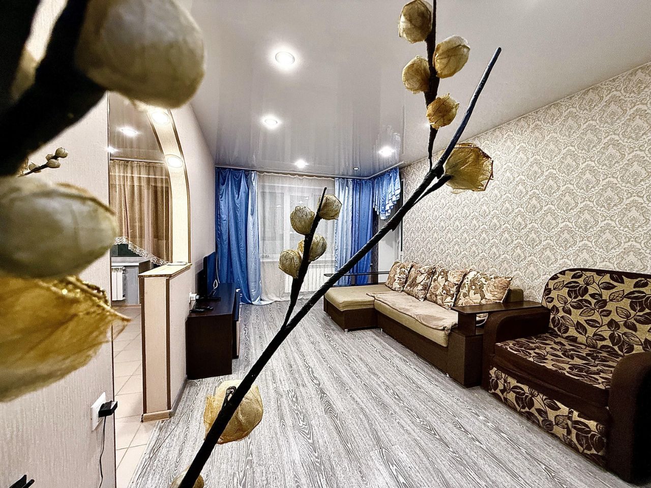 - Просторная гостинная! Уютная зона для отдыха с диваном (2 спальных места), раскладным креслом (+1 спальное место) и телевизором.