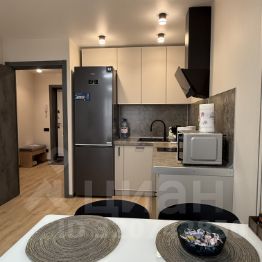 ! Кухня-гостиная: кухонный гарнитур, обеденный стол, холодильник, варочная панель, вытяжка, СВЧ-печь, чайник, посуда, столовые принадлежности, Смарт-телевизор, тумба под телевизором, интернет, раскладной диван.