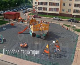 Во дворе огромная детская площадка с безопасным покрытием.