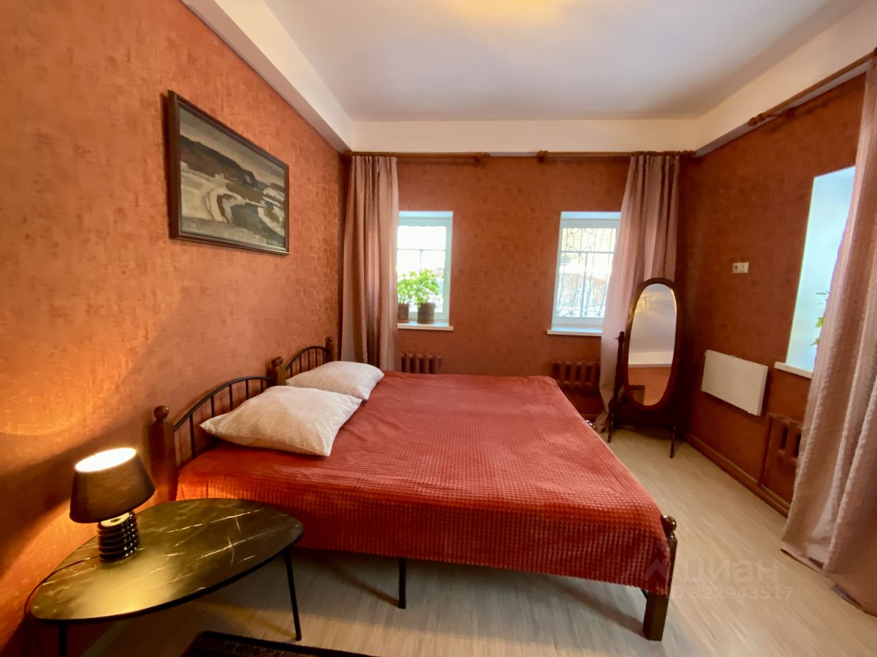 6 спальных мест. Можно расположиться на двуспальной кровати в спальне, во второй спальне двухъярусная кровать, а так же есть двухместный диван в зале. При необходимости, можно организовать дополнительно 2 раздельных спальных места