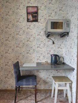 В квартире есть всё необходимое для комфортного проживания. Сделан косметический ремонт. Для удобства проживания предусмотрена мебель на кухне, стол обеденный и приставной, табуреты, складной диван в комнате. Из техники холодильник, микроволновка и стиральная машина.В санузле оборудован душевой поддон со шторкой и раковина.