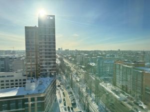 Панорамные окна, прекрасный вид на город.