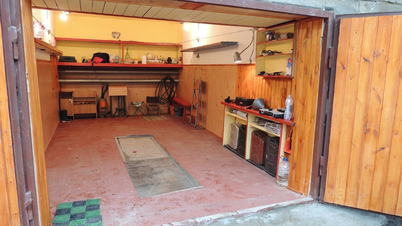 Площадь 17,6м2; размеры: 5,5 х 3,2 м. Проведено электричество. Зимой есть тепло. Убирают снег. Летом холодная техническая вода. Гараж оборудован смотровой ямой, удобными антресолями и полками. Есть погреб (ни разу не пользовались, состояние неизвестно). В 2013 г. был залит новый бетонный пол.