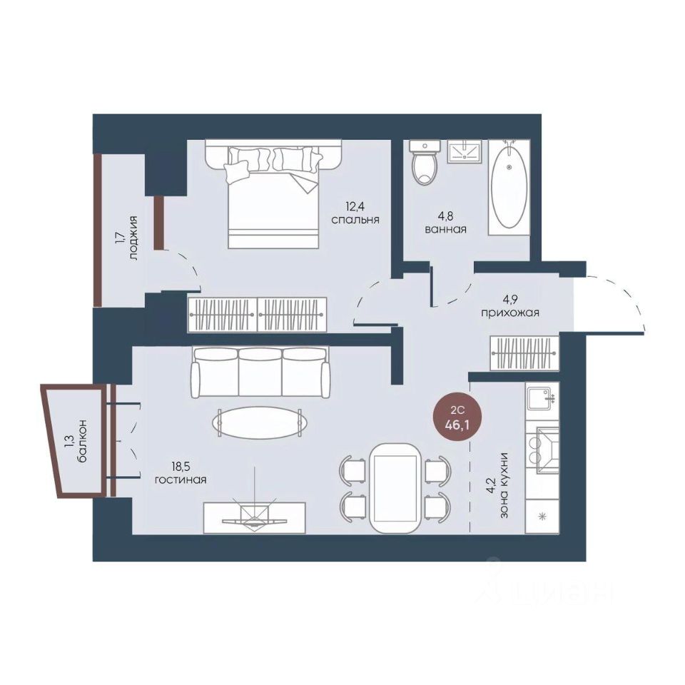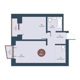 Продаётся 2-комнатная квартира в строящемся доме (Корпус 2), срок сдачи: IV-кв. 2025, общей площадью 46.1 кв.м., на 5 этаже.