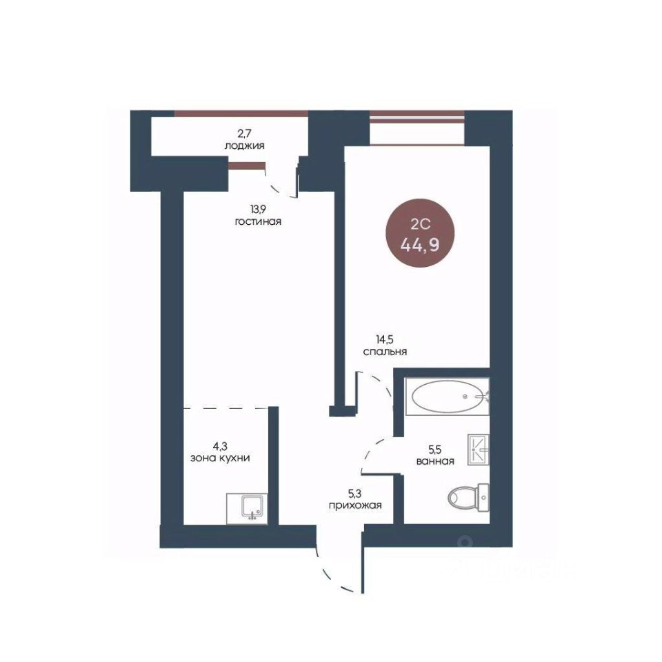 Продаётся 2-комнатная квартира в строящемся доме (Корпус 1), срок сдачи: IV-кв. 2025, общей площадью 44.9 кв.м., на 3 этаже.