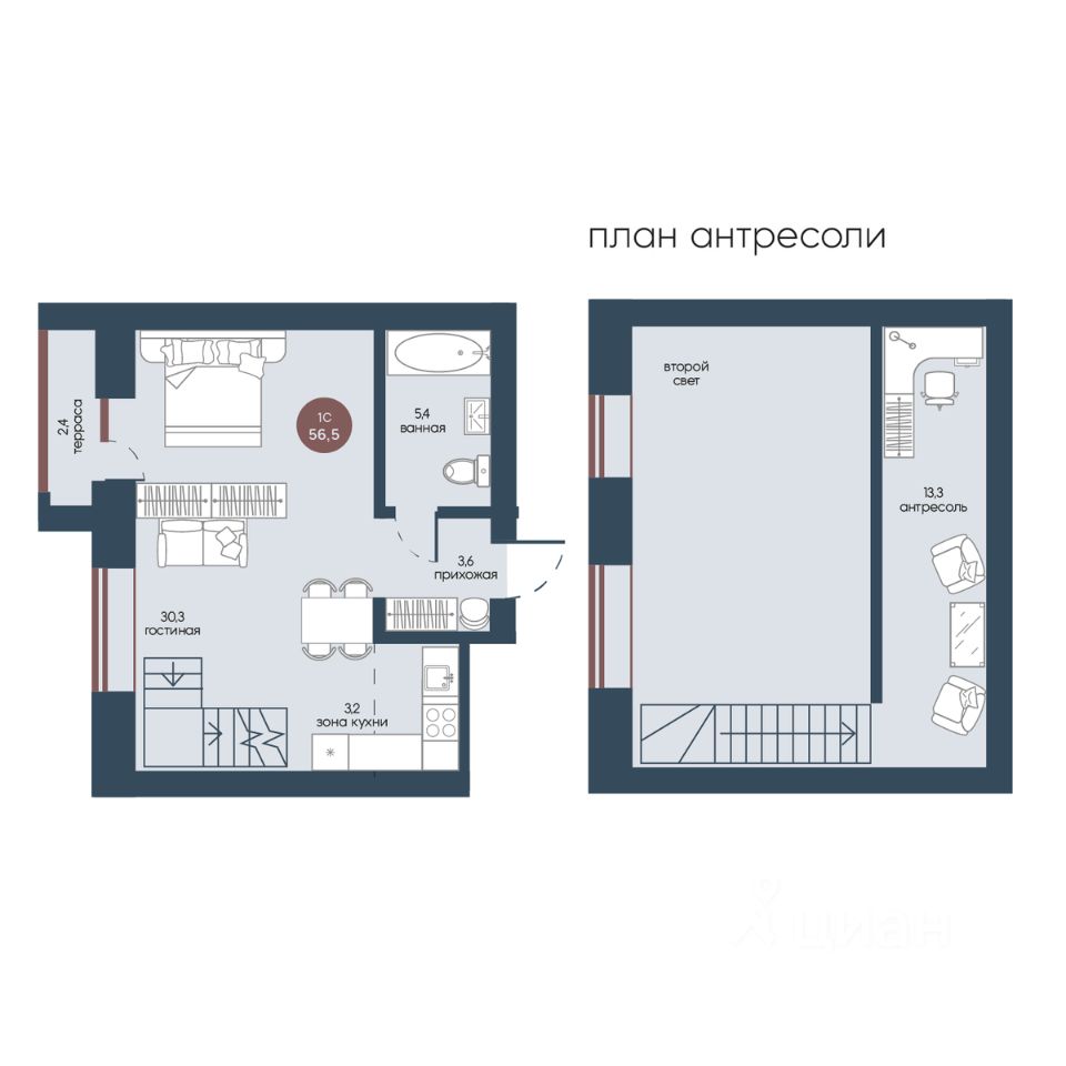 Разнообразные планировки и нестандартные архитектурные решения. Квартиры с террасами, окном в ванной, вторым светом, гардеробными и мастер-спальнями.