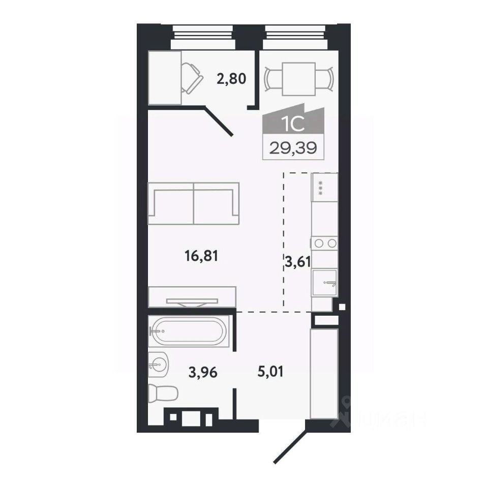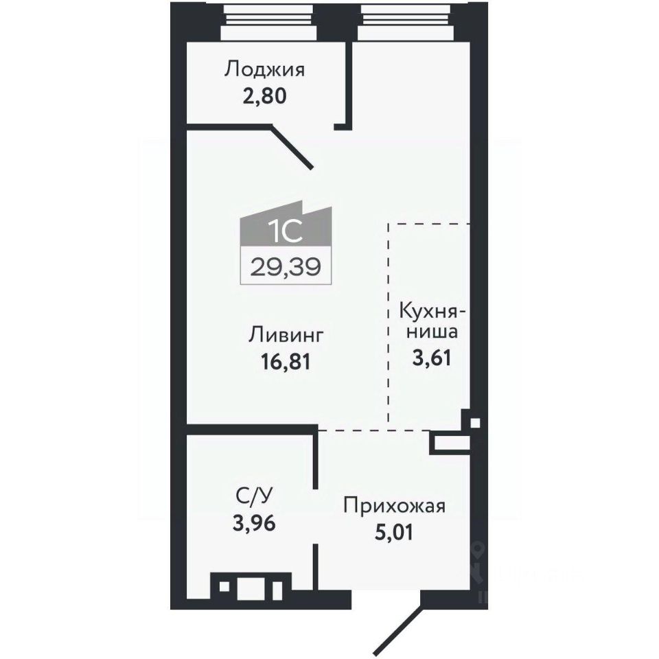 Общая площадь29,39 м²