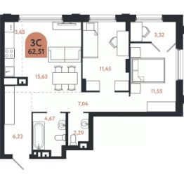 Общая площадь62,51 м²