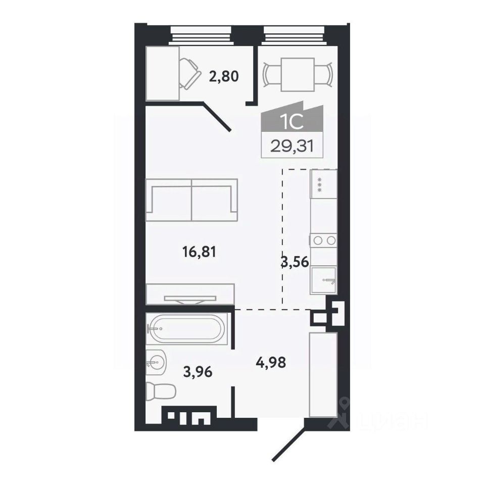 Общая площадь29,31 м²