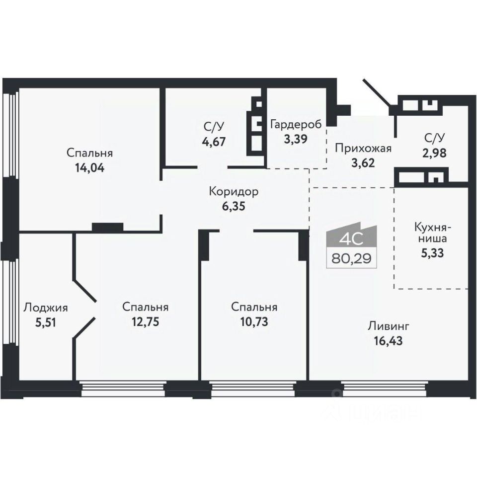 Общая площадь80,29 м²
