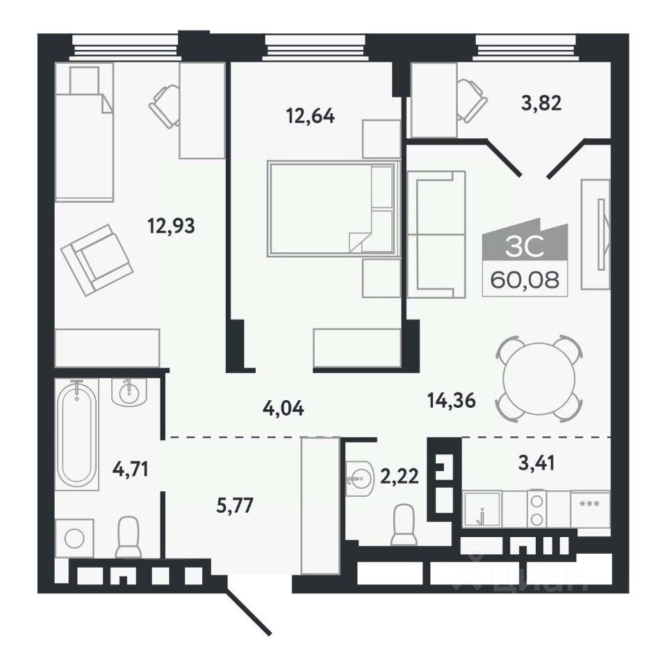 Общая площадь60,08 м²