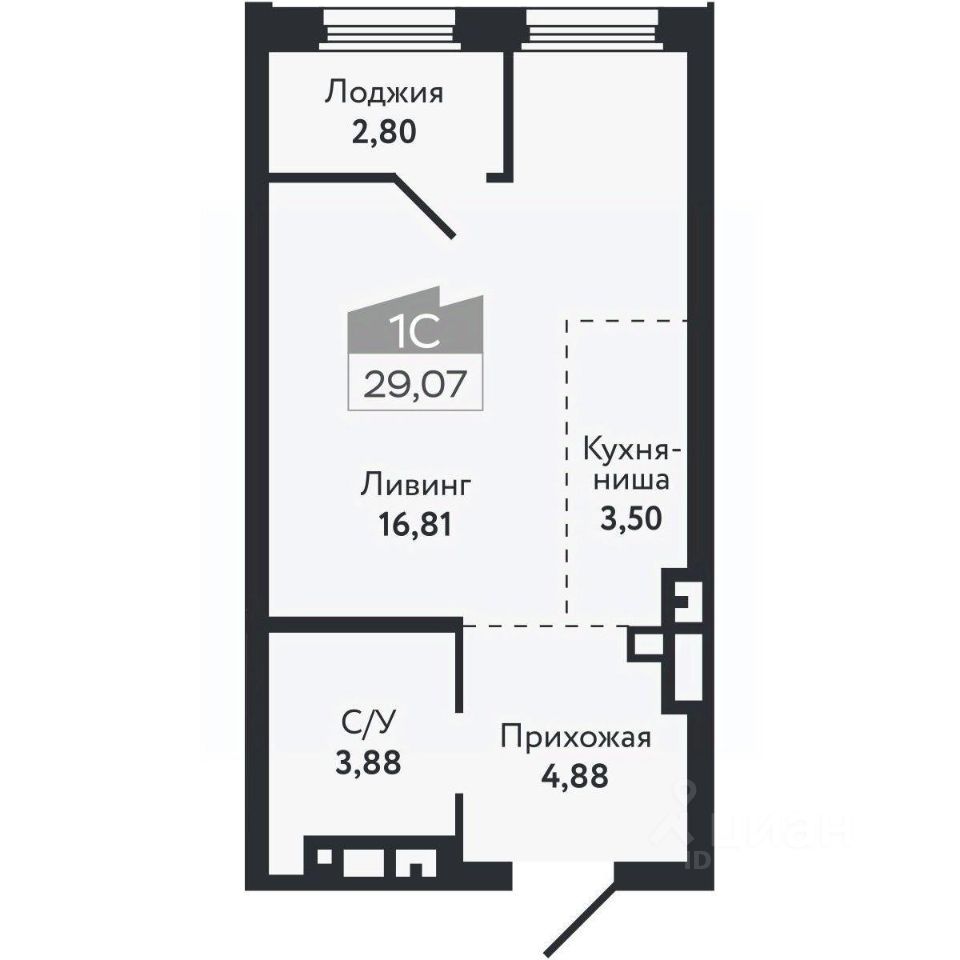Общая площадь29,07 м²