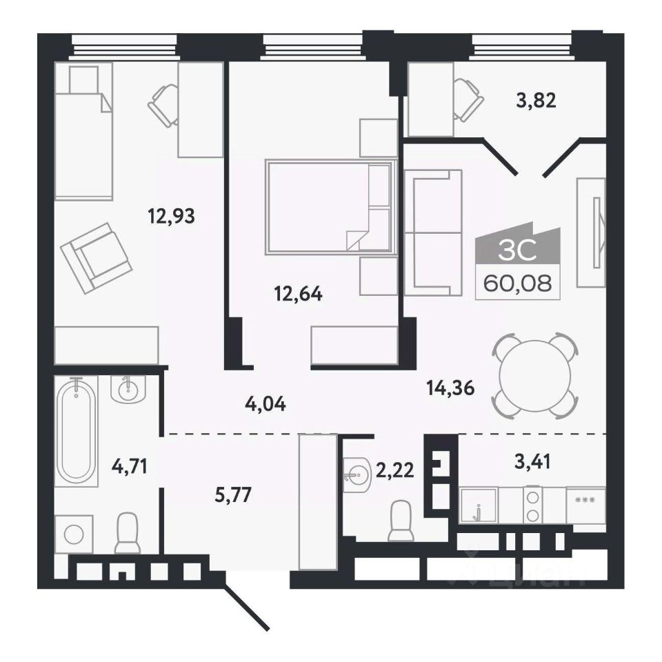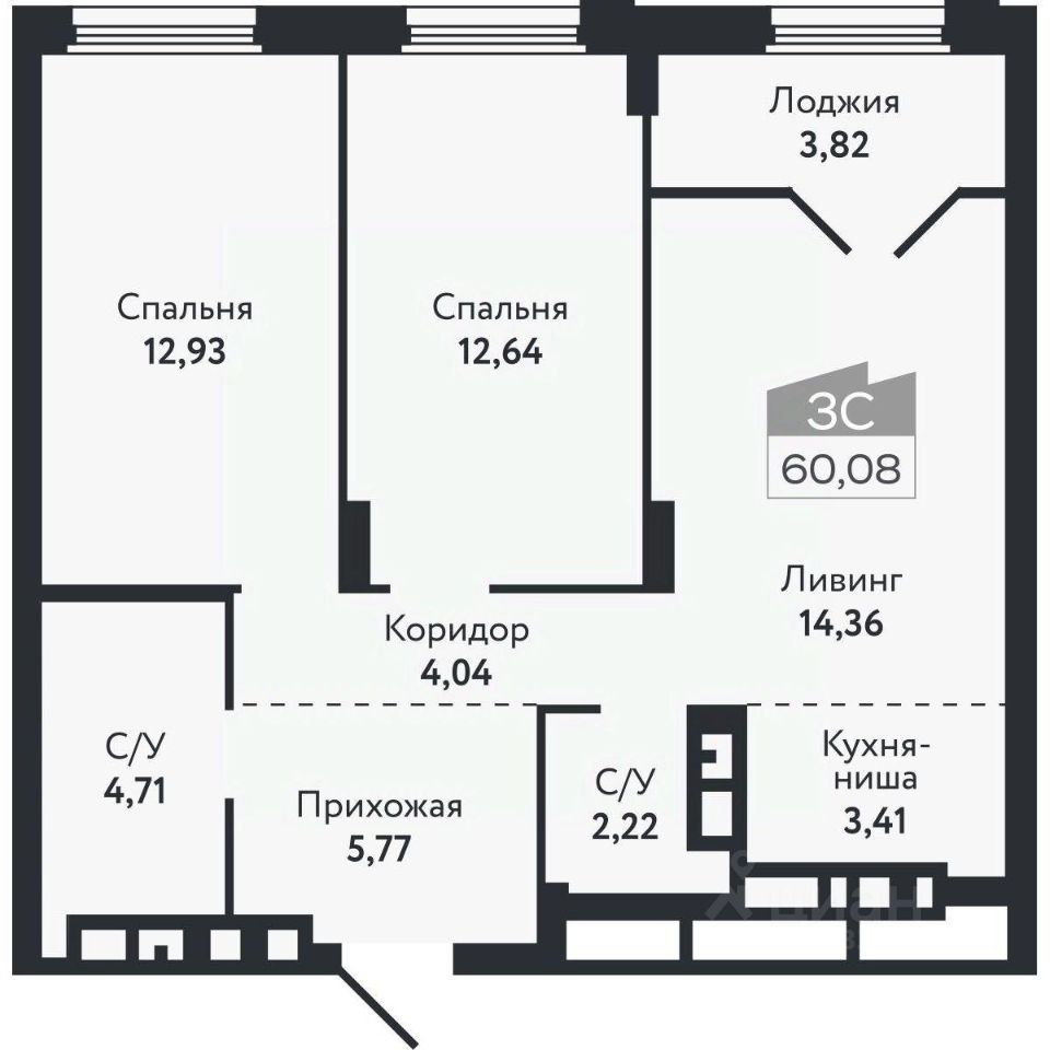 Общая площадь60,08 м²