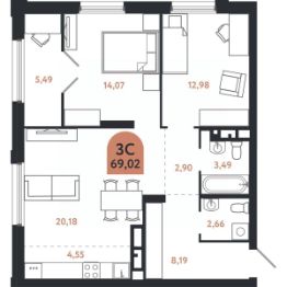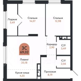 Общая площадь69,02 м²