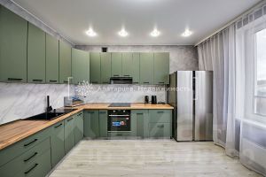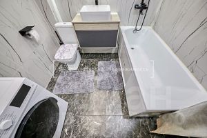 В квартире выполнен ремонт по дизайн-проекту: пол - ламинат, стены - обои в современных цветах, потолок - натяжной с современной системой освещения, благодаря системе "умный дом", вы можете регулировать освещение. В санузле - керамогранит!