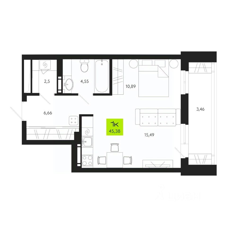 Продаётся 1-комнатная квартира в строящемся доме (Поэзия), срок сдачи: IV-кв. 2027, общей площадью 45.38 кв.м., на 3 этаже. Новый жилой комплекс "Поэзия" от Специализированного застройщика "КИТ Девелоп Групп" расположен по адресу: г. Томск, ул. Маяковского, 24.