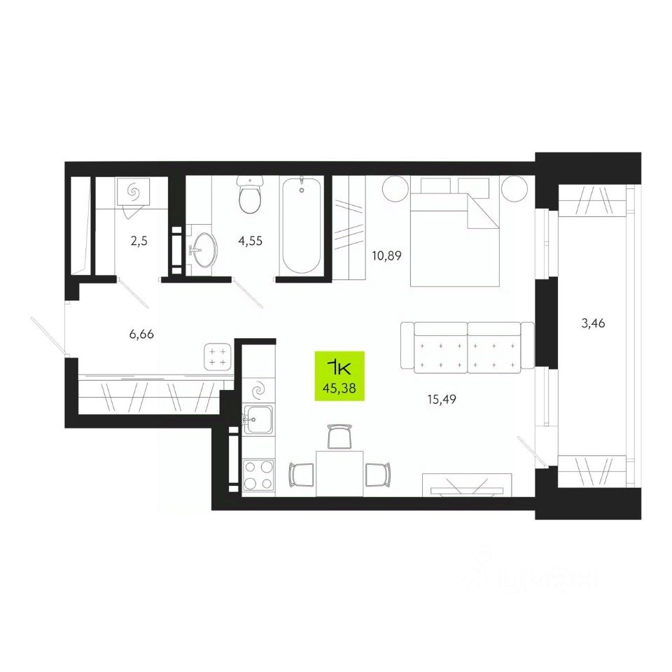 Продаётся 1-комнатная квартира в строящемся доме (Поэзия), срок сдачи: IV-кв. 2027, общей площадью 45.38 кв.м., на 8 этаже. Новый жилой комплекс "Поэзия" от Специализированного застройщика "КИТ Девелоп Групп" расположен по адресу: г. Томск, ул. Маяковского, 24.