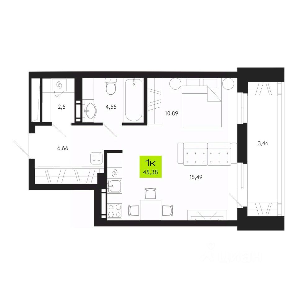 Продаётся 1-комнатная квартира в строящемся доме (Поэзия), срок сдачи: IV-кв. 2027, общей площадью 45.38 кв.м., на 16 этаже. Новый жилой комплекс "Поэзия" от Специализированного застройщика "КИТ Девелоп Групп" расположен по адресу: г. Томск, ул. Маяковского, 24.