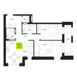 Продаётся 2-комнатная квартира в строящемся доме (Поэзия), срок сдачи: IV-кв. 2027, общей площадью 68.19 кв.м., на 9 этаже. Новый жилой комплекс "Поэзия" от Специализированного застройщика "КИТ Девелоп Групп" расположен по адресу: г. Томск, ул. Маяковского, 24.